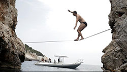 - Otkačen neki tip, dobro smo se zabavljali. Zaustavili smo se i u Zelenoj špilji, a u Komiži smo dobili i male sljedbenike - mališane iz mjesta koji su htjeli s nama. Naravno, roditelji su im pop...ili, a nama su rekli da smo ludi i da ćemo poginuti, da će zvati policiju da nas spriječe. No, nas nitko nije mogao zaustaviti, a kako bismo se još bolje uvježbali, zakačili smo špag između dvije stijene iznad mora i neko vrijeme vježbali hodanje po špagu. Uz to, vježbali smo se i pentranju po liticama, što je posebno interesantno u Zelenoj špilji jer svaki je pad u more pa nema nikakve opasnosti od ozljede. U Komiži smo dogovorili jedan brod da dođe po nas na Jabuku, starog iskusnog morskog vuka Šimu Zankija koji je imao zadatak dovesti i cure kako bi snimile zaključne kadrove naše reportaže. On nas je tražio svega 1.000 kuna za to, naspram nekih drugih koji su tražili i po nekoliko tisuća ističe Vitomir.