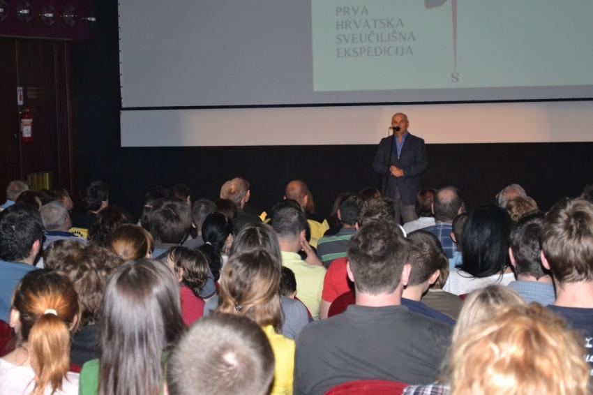 U petak je Art-kino Croatia zaživjelo punim plućima zahvaljujući našoj premijeri. Malo kašnjenje zbog velike gužve nije omelo pozitivnu energiju publike koja je oduševljeno komentirala kadrove i redovito ih nagrađivala pljeskom. Kada su se svi smjestili u prepunjeno gledalište, Davor Garić je otvorio događaj i prozvao redom govornike prof. dr. sc. Tončija Mikca, prorektora za poslovne i integracijske procese, Veljka Karabaića, pročelnika Odjela za sport i tehničku kulturu Grada Rijeke, prof. dr. sc. Predraga Šustara, dekana Filozofskog fakulteta, te voditelja ekspedicije, iliti mene. Govornici su imali samo pozitivne kritike za projekt i mislim da su i sami dijelom bili iznenađeni golemim interesom i odazivom. Skrenuo sam pažnju na to da je projekt puno više od uspona ili putovanja, da traje cijelu godinu, pa da ga tako treba i vrednovati. Posebno nam je drago što je ova ekspedicija uspjela motivirati još nekoliko novih ekspedicija, pa tako i novu sveučilišnu humanitarnu ekspediciju, koja će veslati od Savudrije do Prevlake. Naravno, tu je zahvala svim članovima ekspedicije što su učinili projekt tako posebnim, svim sponzorima i svima koji su pratili naš napredak, bodrili nas i hranili pozitivom.