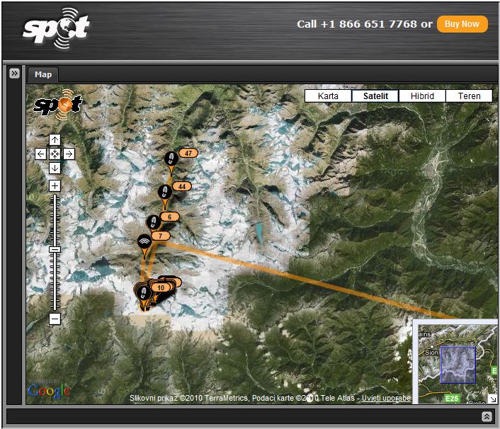 Dario Rocco iz RoccoAdventure.com posudio nam je vrhunski GPS uređaj za praćenje položaja Ekspedicije, i zadnja vježba u središnjim Alpama je generalna proba i za korištenje tog uređaja u Africi. Naša pozicija mogla se pratiti uživo tijekom same vježbe, a po njezinom završetku postavljena je statična slika našeg kretanja.